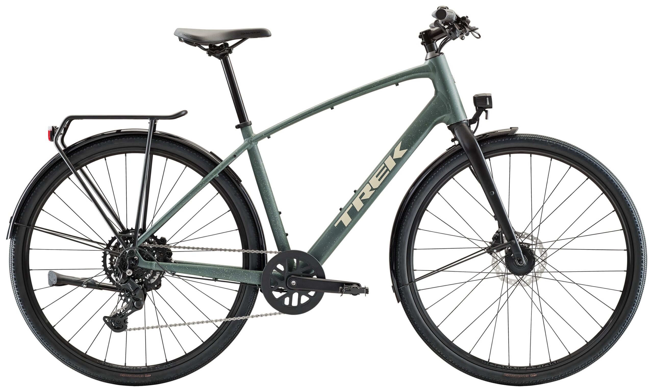 Trek FX Sport AL Equipped : VTC aluminium polyvalent et complet, idéal pour ville, loisirs et fitness. Confort, sécurité et accessoires intégrés.